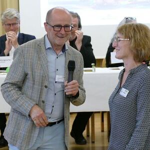 Abschließend war es an Claudia McNichol und Brigitta Fuchshuber von Szenario, Christian Pichler zu verabschieden, der das letzte Mal vor seinem Pensionsantritt im September bei einer Szenario-Tagung als Leiter des Katholischen Bildungswerkes OÖ mit dabei war.