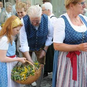 Im Anschluss verteilten die Goldhaubenfrauen wohlriechende und gesegnete Kräuterbüscherl an die Mitfeiernden. Über 400 an der Zahl haben sie auch heuer wieder gebunden, vielen Dank dafür!