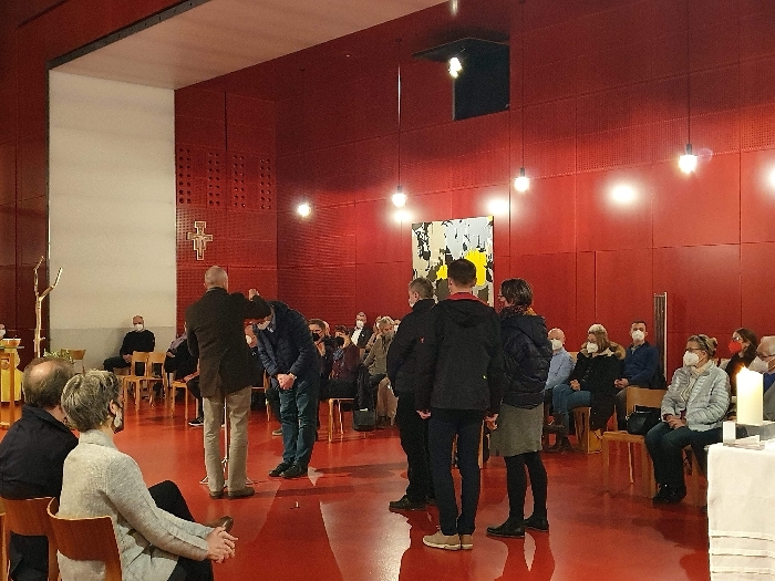 Kunst als Gegenentwurf zu uneingeschränkter, unkontrollierter politischer Macht, als Protest und tiefster Ausdruck menschlicher Schöpfungskraft, als Brückenbauerin über Brüche und Gräben, die wir derzeit verstärkt erleben, waren die Gedanken, an diesem berührenden Abend, musikalisch begleitet vom Chor Septakkord. Der Ausklang bei „Wasser und Brot“ ermöglichte noch viele Gespräche. Die Kunstwerke sind bis Pfingstmontag in der Kirche zu sehen.
